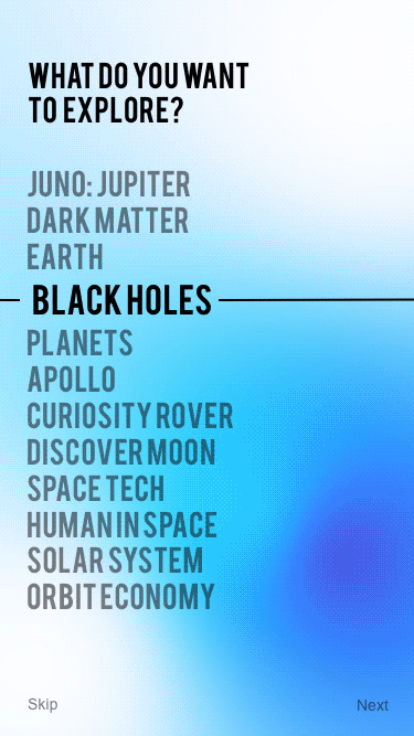 This was a project to redesign the NASA app to make it more modern and appealing to a younger generation like Gen-Z. The purpose of this app is to create a platform for kids to learn more about the universe and be able to share their interest with their community.
